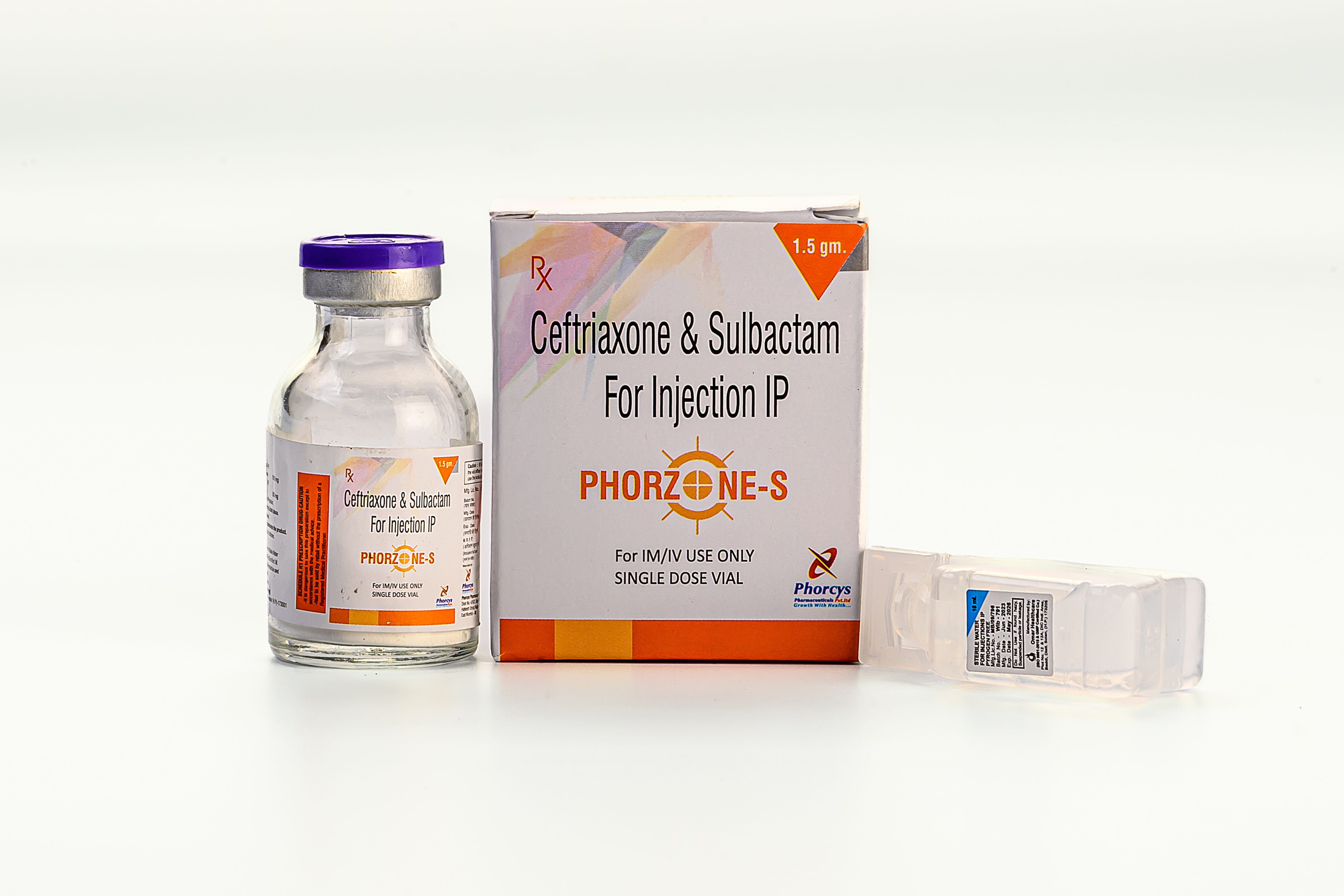 Inj>PHORZONE 1-S is a combination of two medicines: Ceftriaxone 1G and Sulbactam 500MG. Ceftriaxone is an antibiotic. It works by preventing the formation of the bacterial protective covering which is essential for the survival of bacteria. Sulbactam is a beta-lactamase inhibitor which reduces resistance and enhances the activity of Ceftriaxone against bacteria.